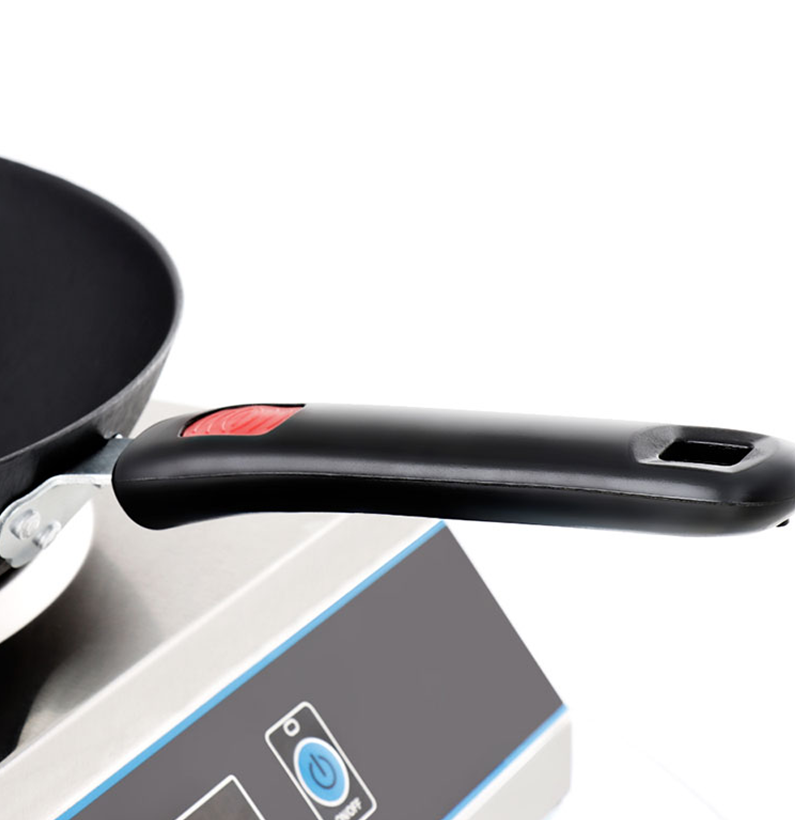 Plīts kompaktais izmērs un stilīgais dizains ļauj to ērti integrēt jebkurā virtuves izkārtojumā – piemērota gan restorāniem, gan ielu ēdināšanas punktiem vai food truck. Ieliektā virsma nodrošina ciešu kontaktu ar komplektā iekļauto 35 cm diametra dzelzs WOK pannu, veicinot vienmērīgu uzsildīšanu un ēdiena apstrādi bez siltuma zuduma.